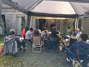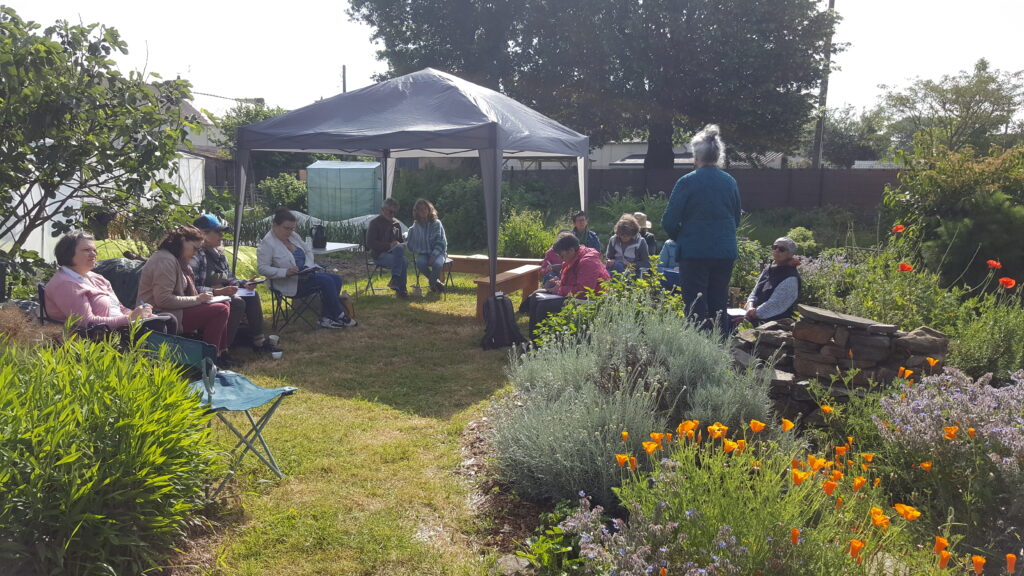 Chacun apporte ses productions ( Macérâts, productions de graines, feuilles séchées, fleurs), ce qui sollicite un moment d’échange et de conseils sur le séchage.