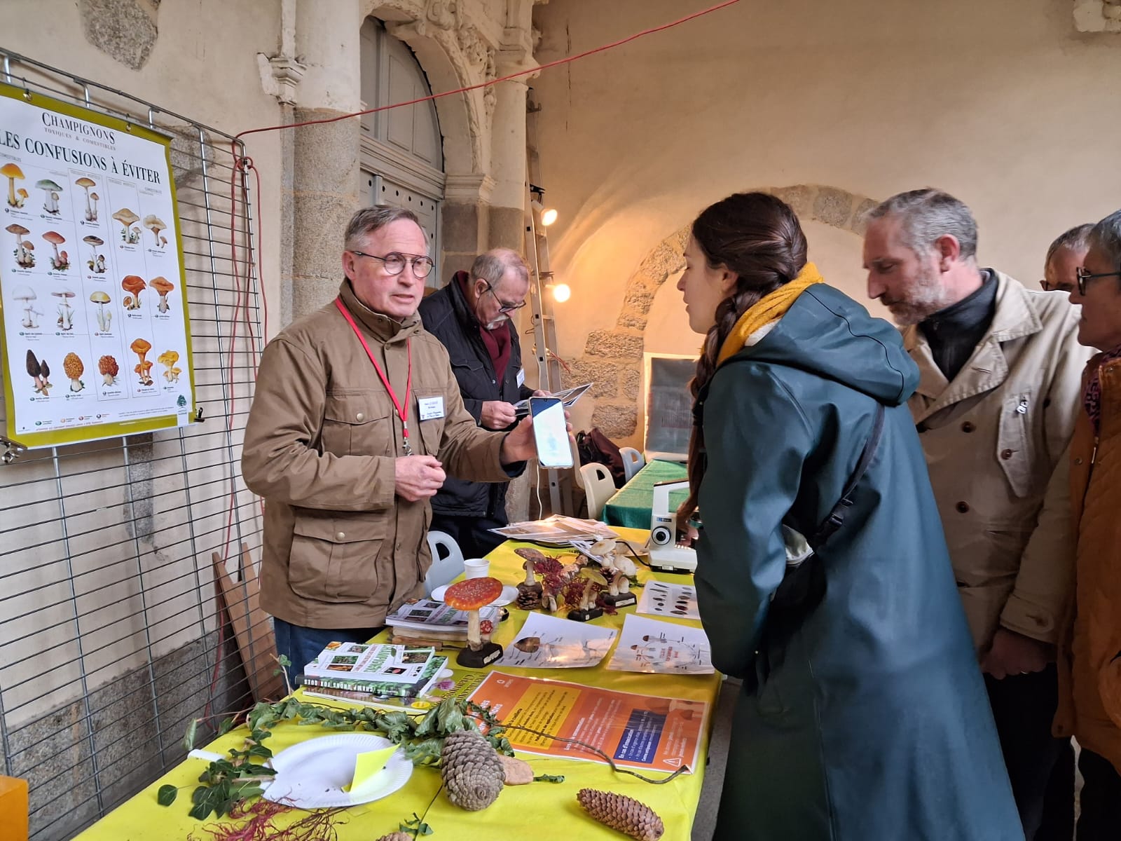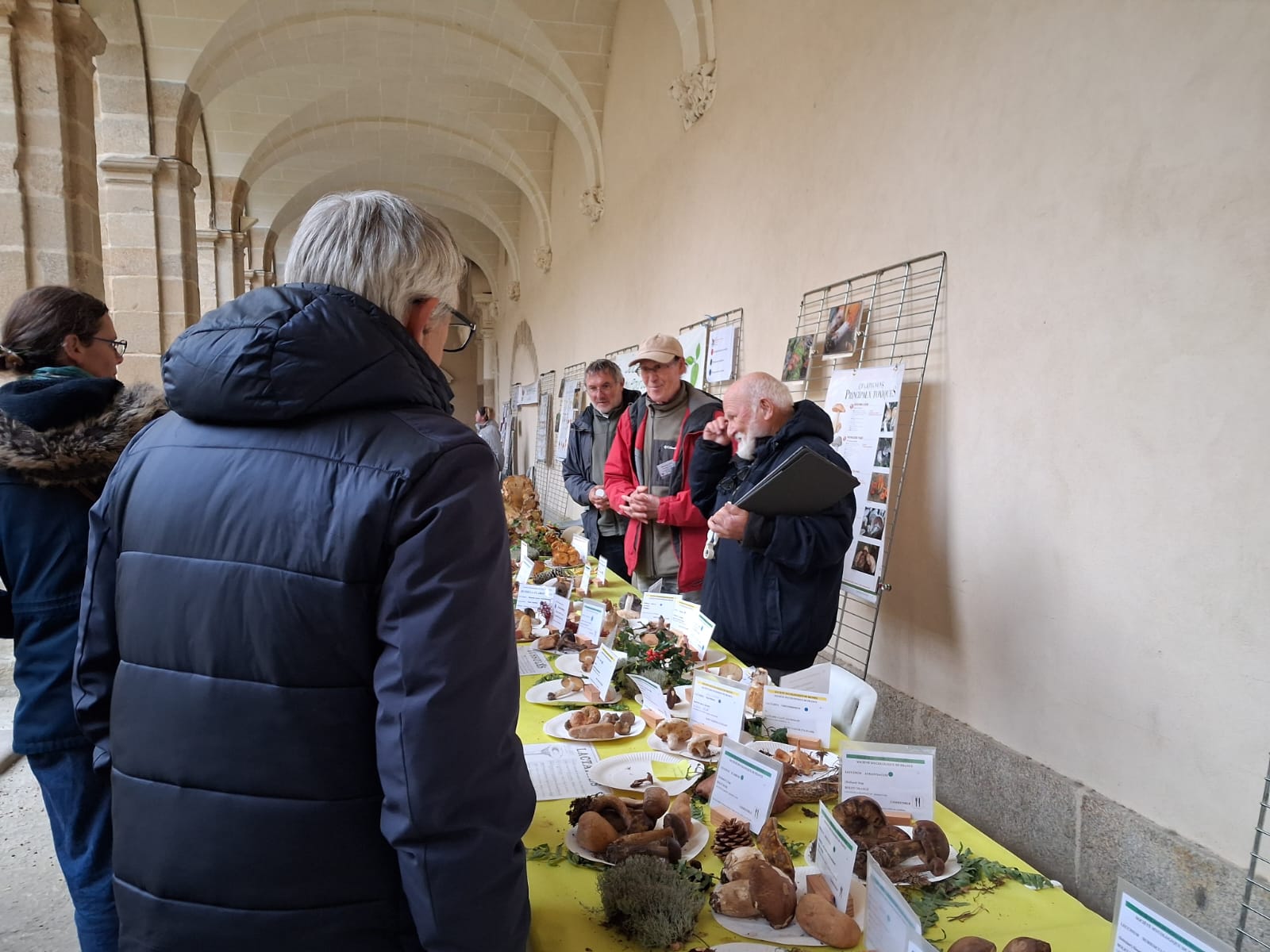 L’après-midi, nos mycologues (Marcel, Jeanine, Claude, Michèle, Alain et Jacky) ont procédé à l’identification des espèces récoltées. Dans la foulée une douzaine de bénévoles de la SHPR ont installé l’exposition (accueil des cueilleurs, préparation, décoration et présentation).