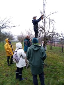 Nous avons pu voir les tailles de pommiers, poiriers, framboisiers figuiers, pêchers et vignes : aération et aspect général de la structure, différenciation entre les bourgeons « fleur » et les bourgeons « fruits », entretien du matériel, comment bouturer, apporter les nutriments nécessaires à un bon développement, nous allons essayer de retenir toutes ces bases…