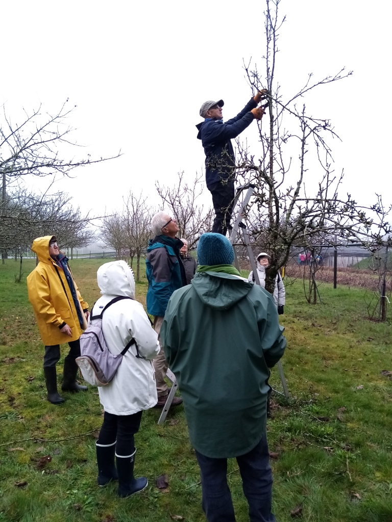 Ce samedi matin brumeux, nous étions une vingtaine de participants, dont 3 nouveaux adhérents, autour de nos animateurs, Jean Yves, Alain et Christophe, spécialistes de la taille des fruitiers.